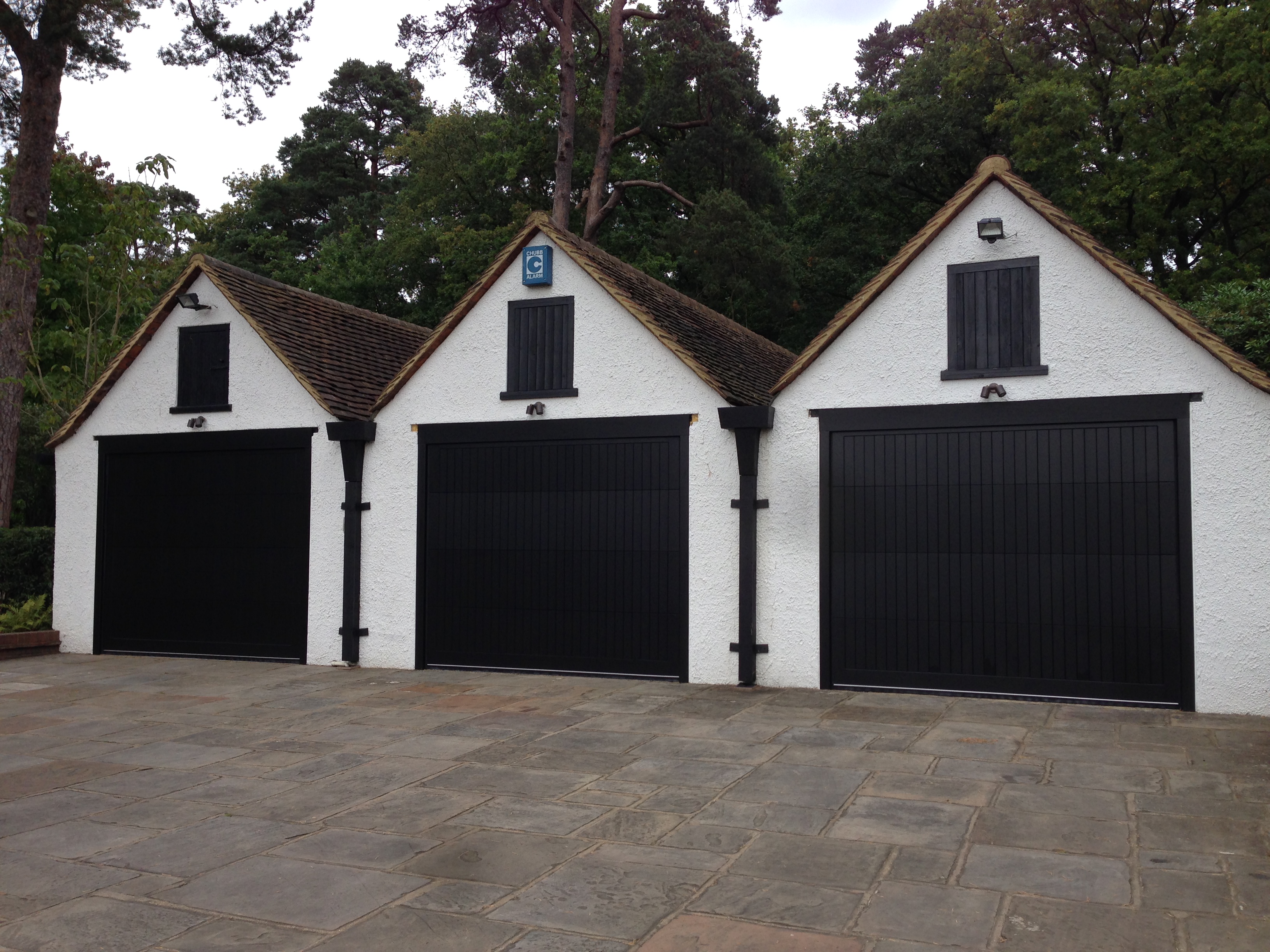 Three Warwick sectional doors finished in Ebony