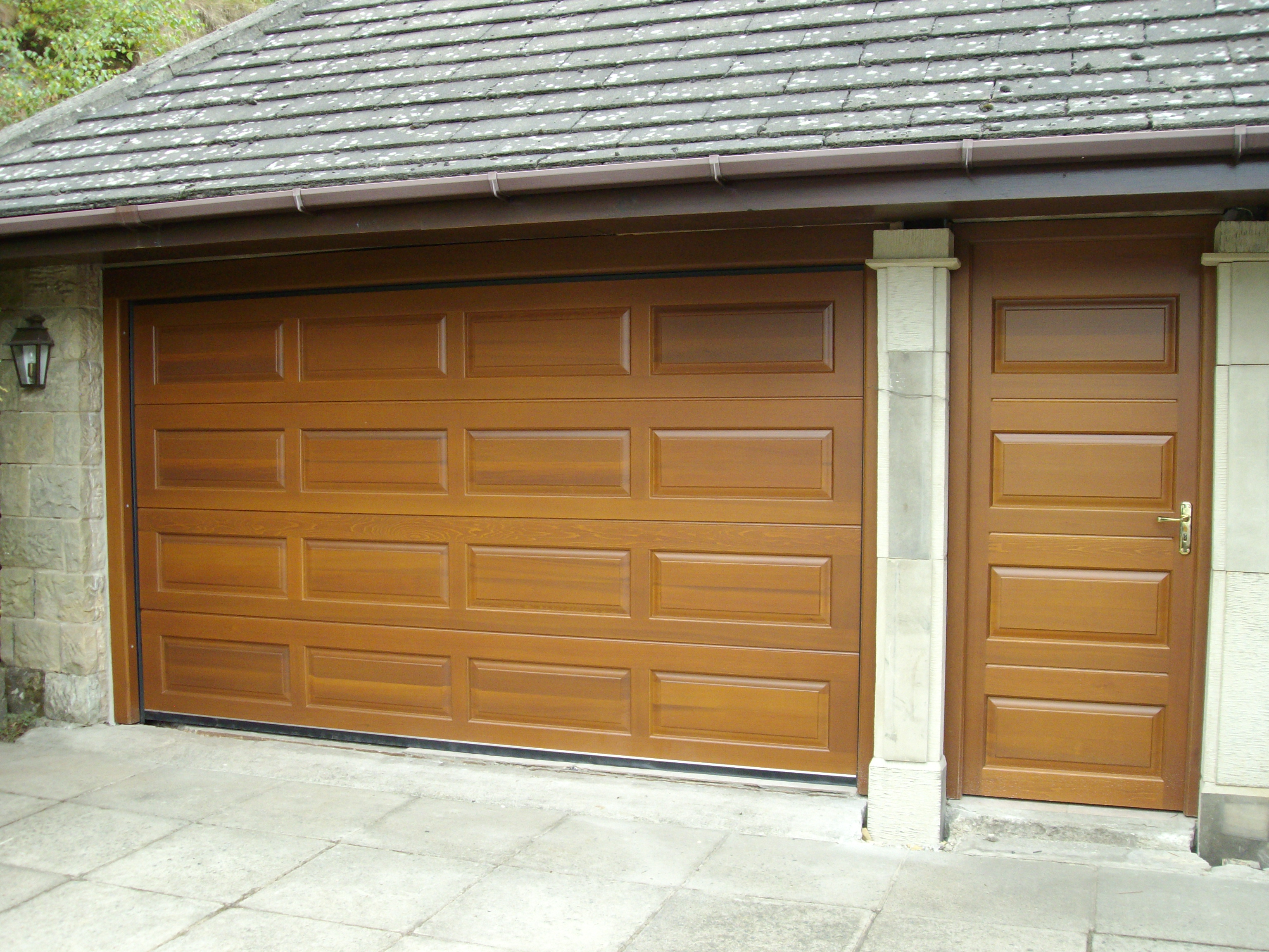 Double Bamford sectional door finished in Golden Oak